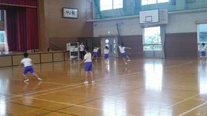 体育でキックベースボールの学習をしている間は、体操もチーム毎に行っています。今日は体操からどちらのチームも今までにない大声を出していて、「昨日負けたから盛り上げるんだ」と更にやる気を高めていました。試合中も、アドバイスをし合って大盛り上がりです。