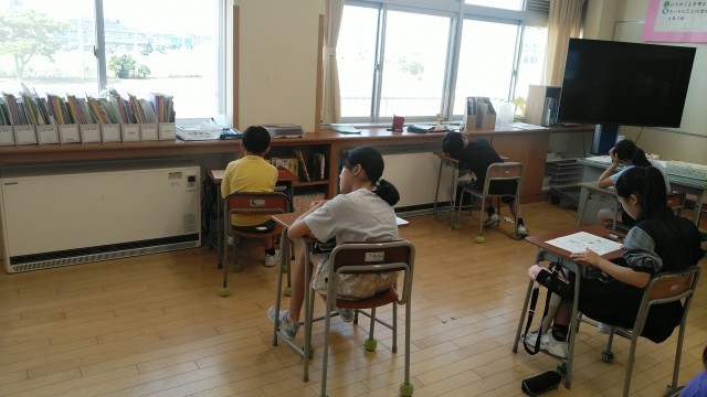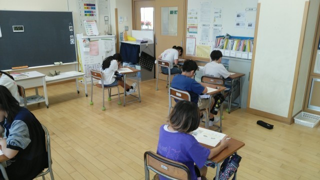6年生は、1時間目にテスト勉強をしていました。国語科か理科のテスト勉強をしていました。