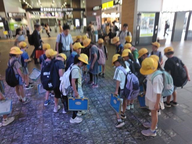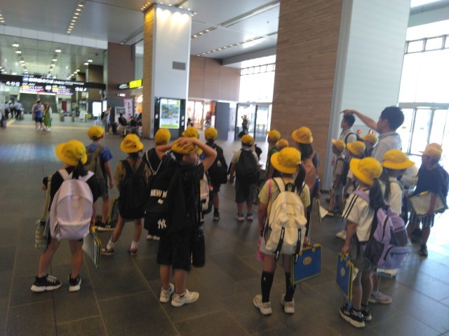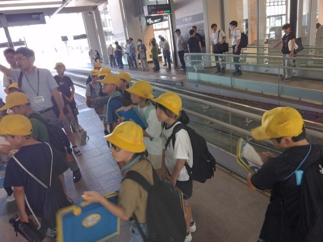富山駅の見学です。市役所の方の説明をしっかりと聞き、メモを取り始めました。