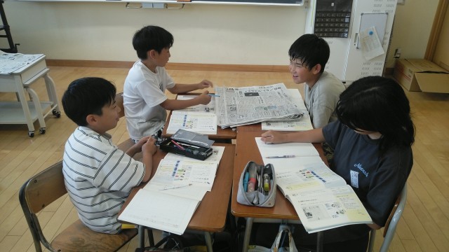4年生の5時間目は、国語科の学習でした。新聞づくりをしていました。