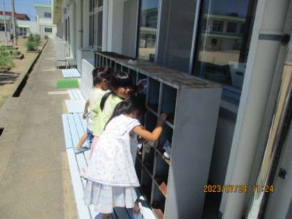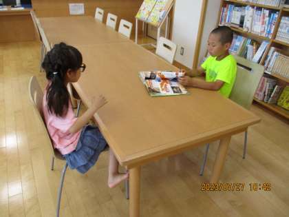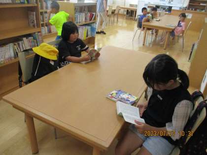 夏休み前に借りた本はもう読み終わったそうです。うれしそうに新たに本を借りていく子や、静かで涼しい図書室で落ち着いて読書を楽しむ子の様子が見られました。 -