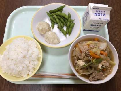 給食には様々な富山県産の食材が使われていますが、今日は富山のえだまめが登場です。