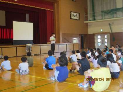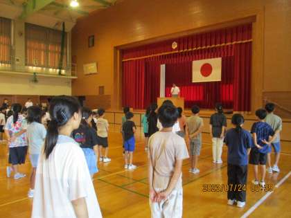 生徒指導主任の先生から、夏休み中の過ごし方についてお話がありました。
