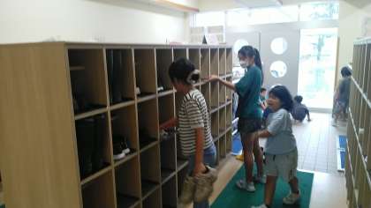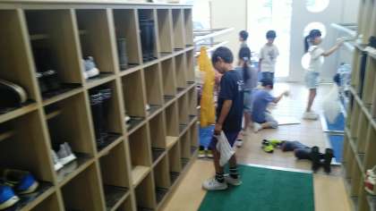 帰る前に掃除をしています。児童玄関には、2年生と6年生がいました。