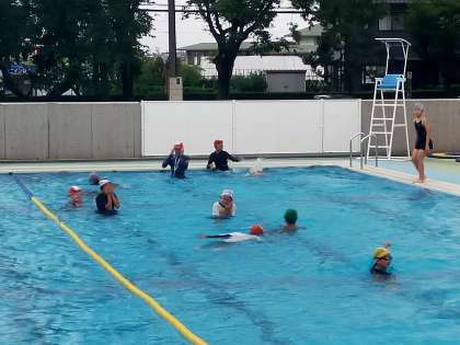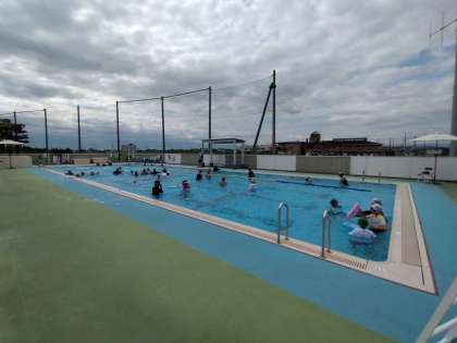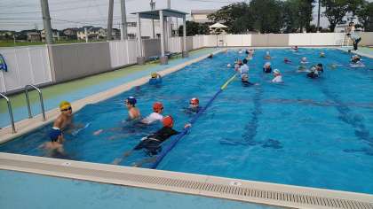 プール開放2日目です。今日も50人くらいの子供が泳ぎに来ていました。とても気持ちよさそうでした。