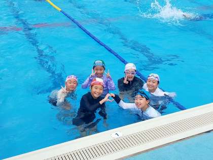 少し肌寒いですが、楽しそうに泳いでいます。 -