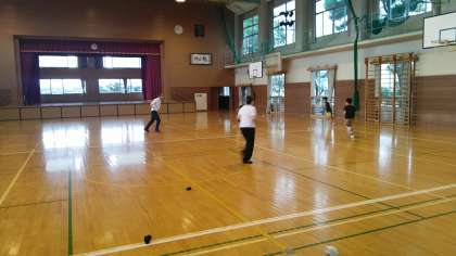 つばめ野級の1組と2組で交流学習をしました。体育館でボールを使ったゲームをしました。