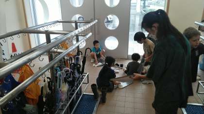 雨が降りそうなのに、たくさんの子供たちがやって来ました。