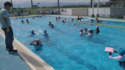 夏休み初日は、たくさんの倉垣っ子たちが、プールに来ています。