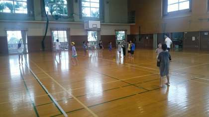 1回入ったところで雨が強く降ってきたので、プール開放は、残念ながら終了することしました。今日は、このあと、いつもの終了時刻まで特別に体育館を開放することにします。プールの終了時刻に迎えにくることになっている保護者の方は、体育館までお願いします。