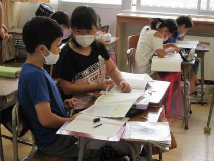 高学年は、委員会の仕事をしたり、9月のスポーツデーに行うダンスの振り付けを考えたりしています。