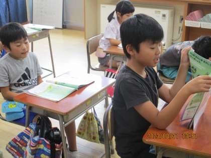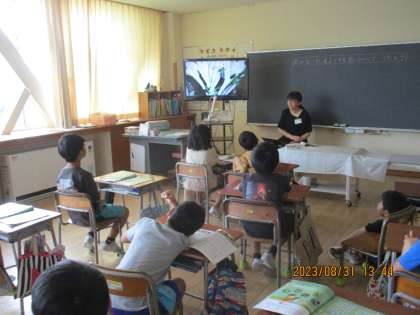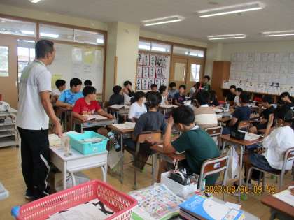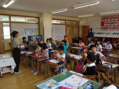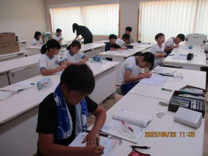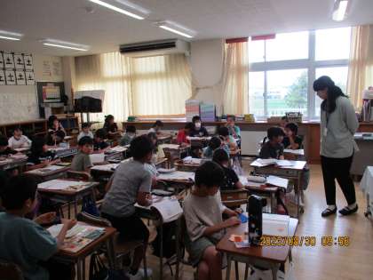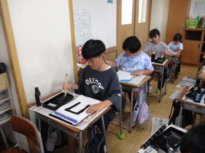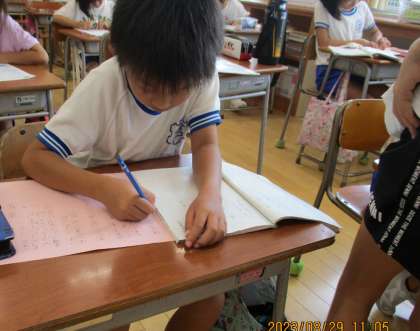 書写の時間はみんな字を書くことに真剣で、教室はとても静かです。