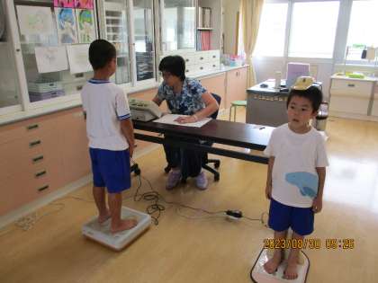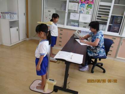 朝から、「何cm伸びたかな・・・」とそわそわしていた子供たちは、保健室の先生から「〇〇cm伸びてたよ」と声をかけられると、ガッツポーズをして教室に戻っていきました。 -