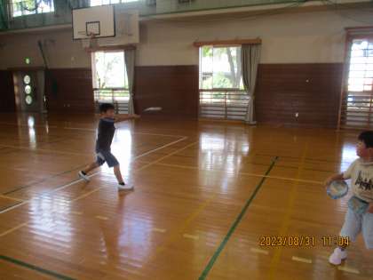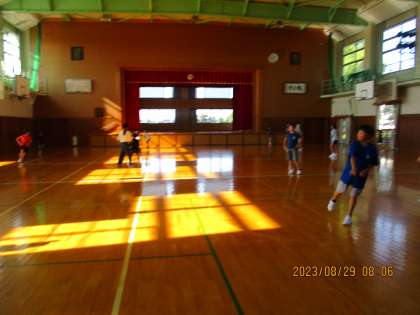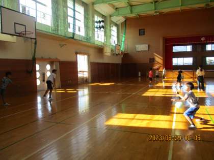 登校後、自分たちの身の回りを整えたら、暑さにも負けず、体育館でドッジボールをしていました。