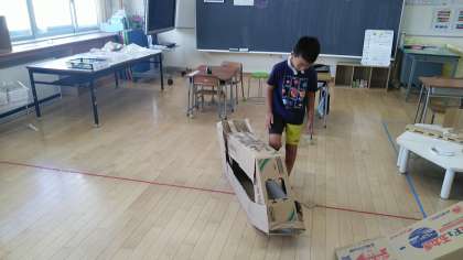 つばめ野級2組の秘密基地に、新しく乗り物が追加されました。教室に入ると、すぐに説明をしてくれました。