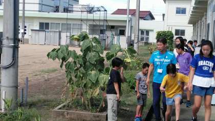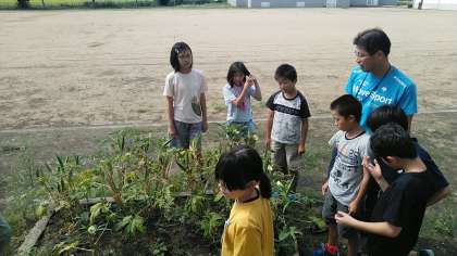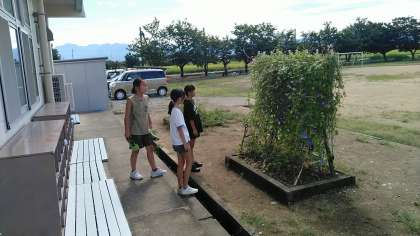 5年生の2時間目は、理科の学習でした。ヘチマやオクラ、アサガオ、ヒマワリ等、植物の観察をしていました。