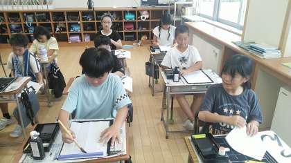 4年2組の5時間目は、書写の時間でした。「らん」という文字の毛筆の練習をしていました。