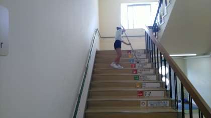 6年生の5時間目は、体育科の学習でした。チャレンジ陸上記録会も近くなってきたので、「走り幅跳び」の練習をしていました。体育館で踏み切りのタイミングの練習をしていました。