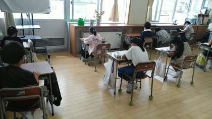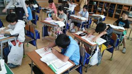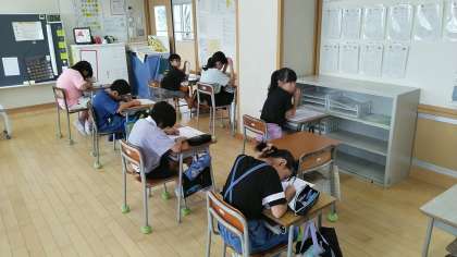 4年1組の2時間目は、算数科の学習でした。わり算のひっ算のところのテストをしていました。