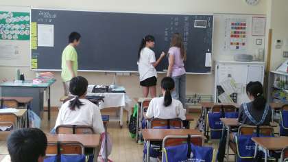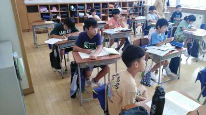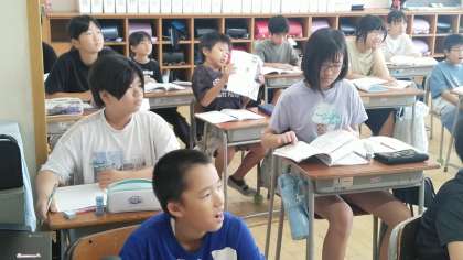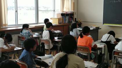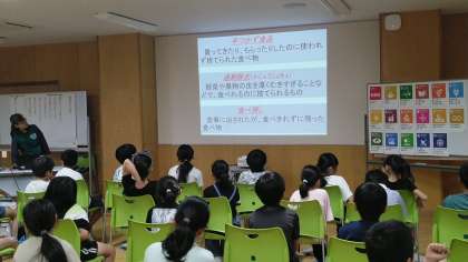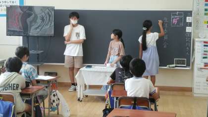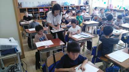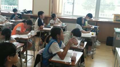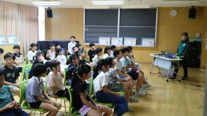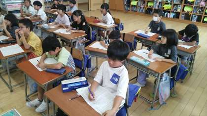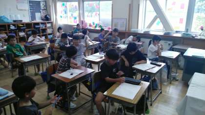 4年生の3時間目は、環境チャレンジ10(後半)の時間でした。1学期の環境チャレンジ10(前半)で立てた計画を、実際にやってみたあとでの今回の後半だそうです。取り組んでみた感想を紹介したり、取り組んだことを生かして間違い探しのゲームをしたりしていました。