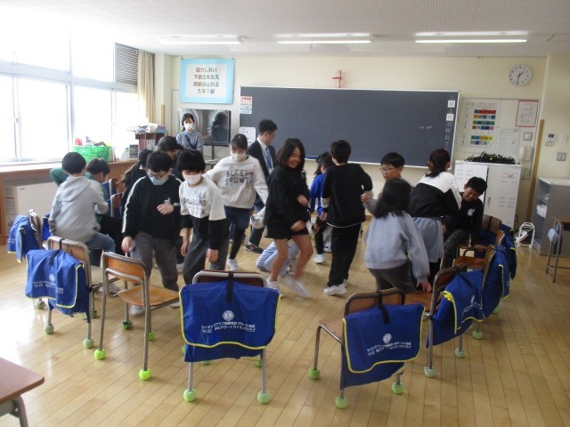 5年1組は、5時間目にお楽しみ会をやっていました。フルーツバスケットをしていました。