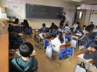 地震や津波を想定した避難訓練を行いました。11月に全校児童や全職員分のライフジャケットがそろったので、全員着用して屋上に避難しました。