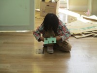 5年2組の1時間目は、算数科の学習でした。三角形の底辺の長さを4cmに決めて、高さを1cm、2cm、3cm、…と変えていくと面積がどうなるかについて考えていました。
