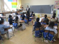 つばめ野級2組の5年生の1時間目は、国語科の学習でした。漢字ドリルを進めていました。「さい」という読みの漢字「妻」「採」「再」を教えてくれました。
