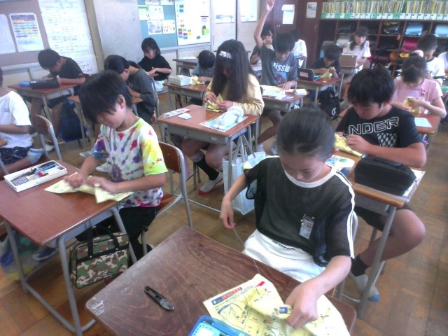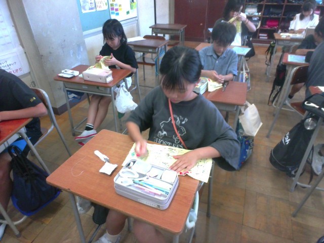家庭科の時間には、手縫いに挑戦しています。今日は、練習布を使って、なみぬいに挑戦しました。縫う幅が同じになるように、慎重に縫っていました。