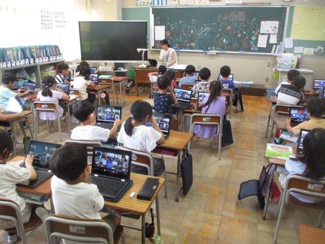 3時間目の学習の様子です。2組は夏期休業中に実施する「オンラインでのクラス会」の練習に取り組んでいました。