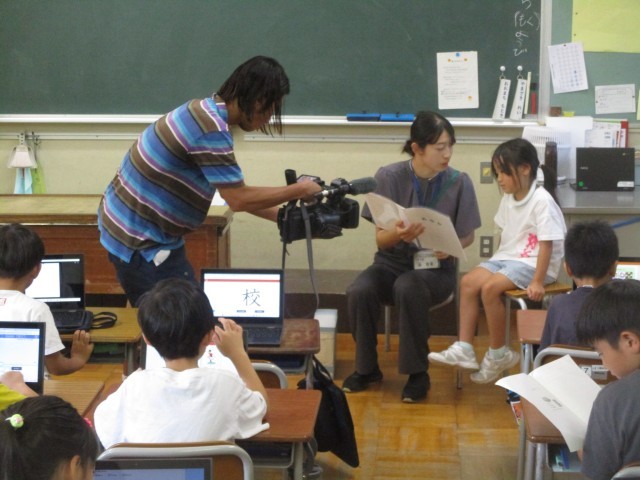 終業式後の学級活動の様子です。2組は通知表渡しの様子の取材を受けていました。