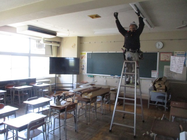 各教室では、この夏、一斉に照明のLED化が進められます。2学期に向けて早くも始動しています。