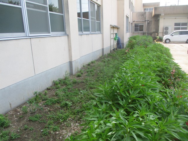4年生のホウセンカも、教員のこまめな灌水が実り、繁っています。猛暑の中にもかすかな秋を感じます。