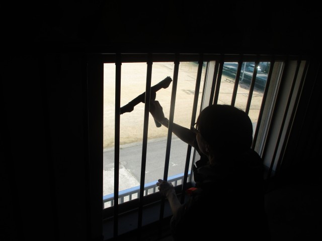 専門業者の方に窓ガラスの汚れをきれいにふき取っていただきました。