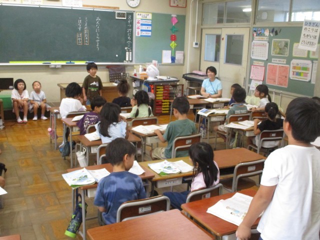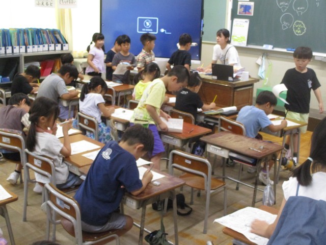 2学期二日目ですが、どの教室もしっかり授業に入っています。夏休みの作品が展示されている様子も紹介します。