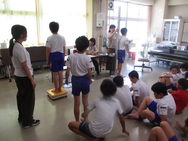 2学期二日目。発育測定が始まっています。5年生男子が測定を行っていました。およそ5か月ぶりの測定で成長も大きいようです。