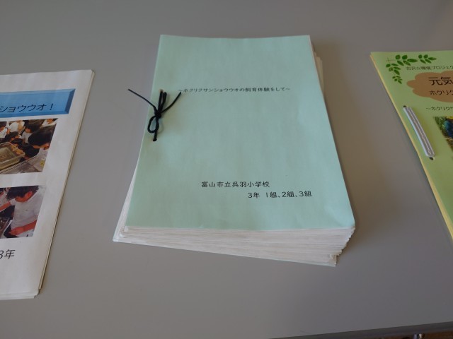 に本校3年生の飼育体験の感想集が展示されています。多くのお客様に閲覧いただいています。