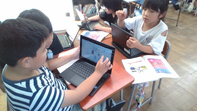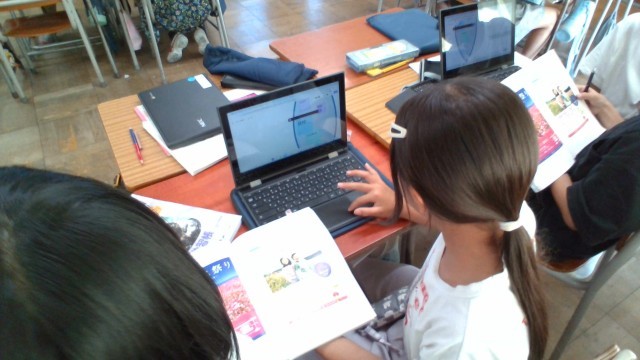 国語科の学習で、「ベン図」を使って2つのポスターの共通点や違いについて整理しました。