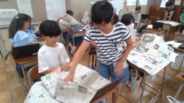 国語科の学習では、新聞記事の特徴や仕組みを学習しました。地方紙と全国紙を比較して違いを考えたり、実際に気になった記事を一つ選び、考えたことや意見を書く練習をしました。毎日学校にも新聞は届くので、日ごろから新聞に親しめるとよいですね。