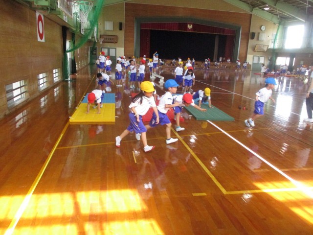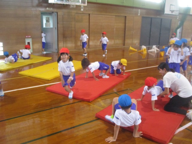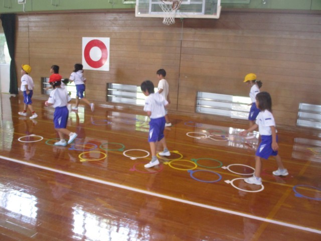 5時間目の学習の様子です。学年体育で体づくりの運動に取り組んでいました。