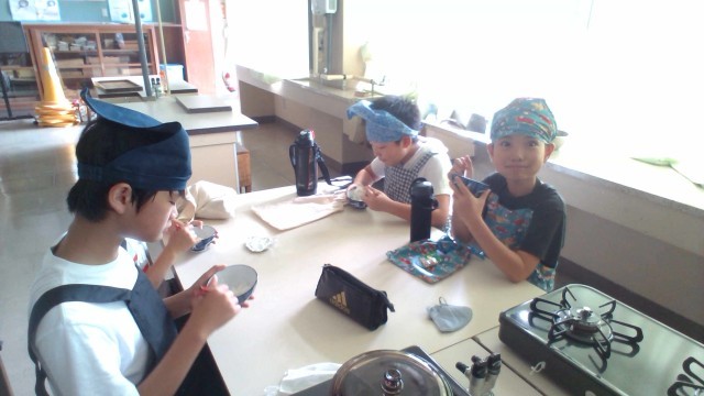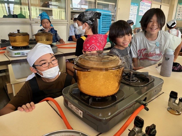家庭科の時間に、調理実習でご飯を炊きました。火加減を注意しながら、おいしく炊くことができました。来週は宿泊学習があるので、野外炊飯でもおいしくお米を炊くことができるとよいですね。