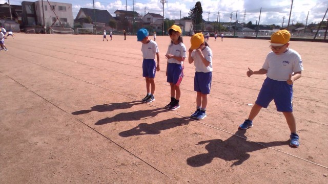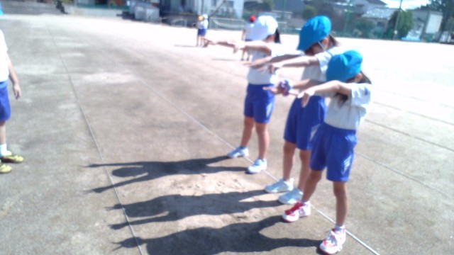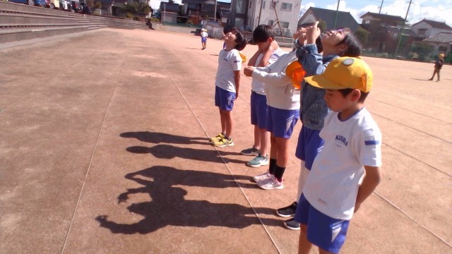 今日は天気がよかったので、国語科「ちいちゃんのかげおくり」に出てくる「かげおくり」にみんなで挑戦しました。