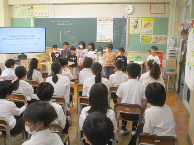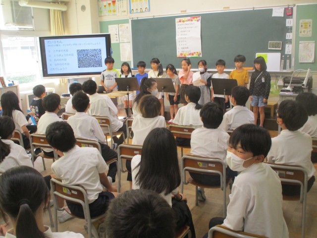「今日の2年生の発表は、面白い言葉や分かりやすいスライドやクイズがあってすごかったです、1番すごかったのはみんなハキハキ喋っていて、台本を全然見ずに喋っているところでした。こんないい発表をを聞くと自分が町たんけんをしているような気持ちになりました。」