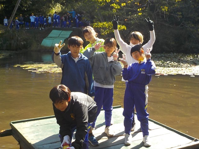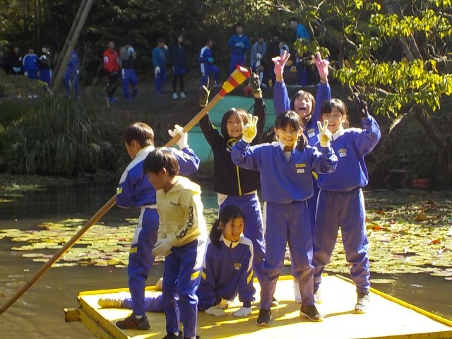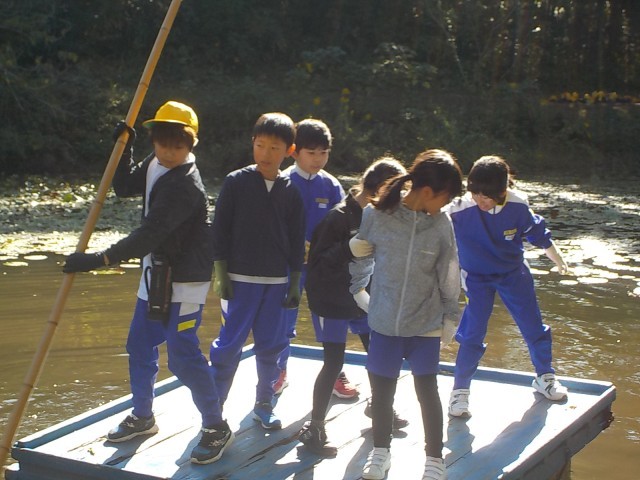 三楽池でのいかだ遊びの様子です。