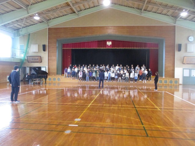 5年生 合唱再始動! 公開日 2025/10/27 更新日 2025/10/27 5年生の活動 5年生にとってのもう一つの本番、オーバードホールでの区域音楽会が来週に迫ってきました。次は「手をつなごう~共に生きる~」一曲の表現となります。再始動!という感じで、細部の確認を行っていました。