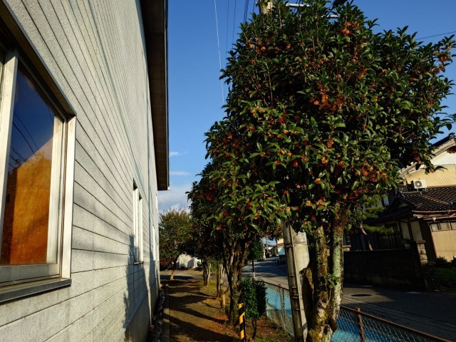 金木犀が香る道 公開日 2025/10/27 更新日 2025/10/27 行事より 体育館東側の金木犀が、とてもよい香りを振りまいてくれています。”金木犀が香る道”を子供たちが元気よく登校しています。