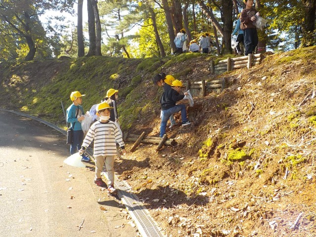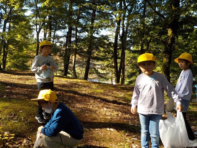 太閤山ランドに秋の実拾いに行ってきました。今日はぽかぽかのお散歩日和で1年生のみんなで気持ちよく園内を巡りながらどんぐりや落ち葉くりをあつめることができました。モミジを嬉しそうに拾っていた子の中には、「手の形みたいだね。」と新しい発見を嬉しそうに伝えてくれました。
