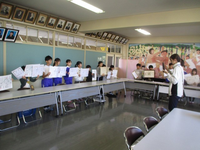 たくさんの伝達受賞がありました。予定していた時間内には伝達受賞の撮影が終わらないほどでした。受賞の様子は本日の給食時間にビデオで全校児童に紹介されました。