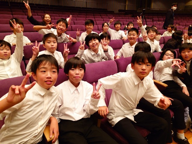 オーバードホールにて 公開日 2025/11/04 更新日 2025/11/04 5年生の活動 5年生がオーバードホールにて開催された、第6区域連合音楽会に参加しました。本番前のリラックスした画像です。