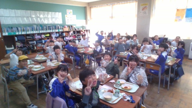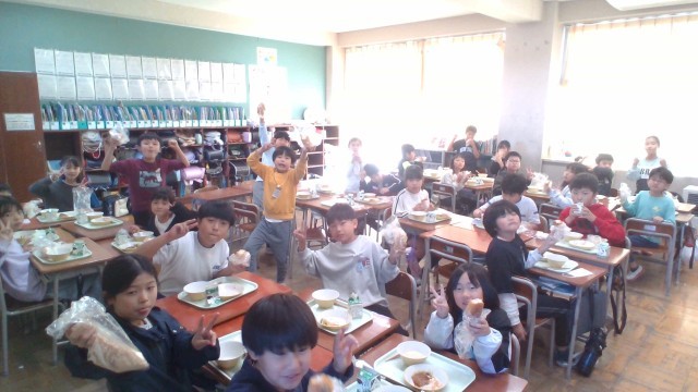 栄養職員と調理員さんの計らいで、呉羽小学校の給食に16年ぶりのあげパンが登場しました。